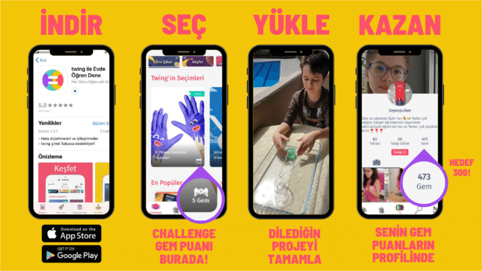 Twing mobil uygulaması evde deney yapmanın, proje geliştirmenin ve yaratıcılığı zenginleştirmenin en güvenilir, öğretici ve eğlenceli yoludur.